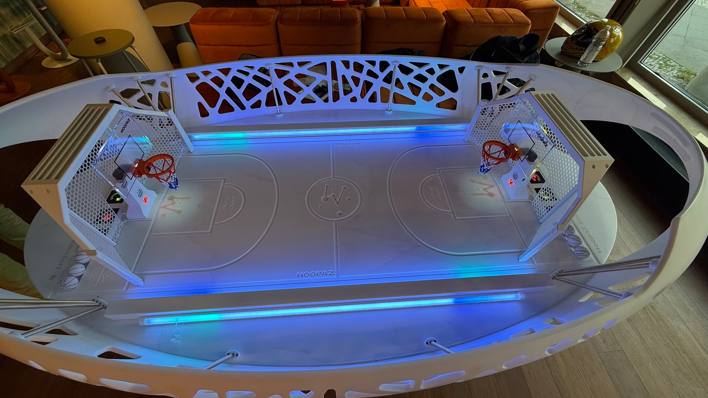 Das erste echte Tisch Basketball Spiel. Inspiriert vom NBA Game. Dein Home Court voll digitalisiert. Patentierte LED Sensorik mit Licht und Sound.