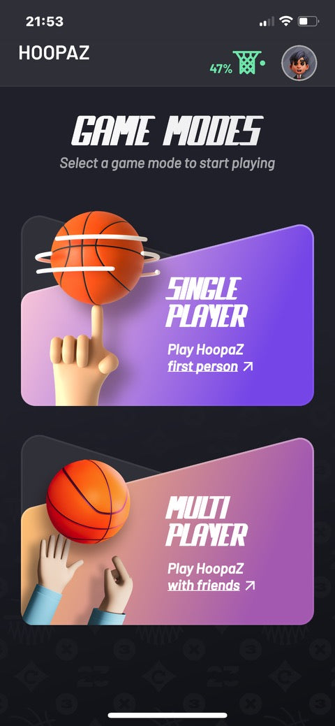 Sobald du die App heruntergeladen und dich angemeldet hast, kann es losgehen. Verbinde die App mit deinem HoopaZ Spiel. Nach dem Start Screen kannst du dein Team wählen und deinen Namen eingeben. Drücke auf „weiter“. So gelangst du auf deinen Home Screen. Hier kannst du weitere Details einstellen, zum Beispiel zu deinem Profil oder zu deinem Finishing-Sound. Hier hast du auch die Möglichkeit, deine Achievements zu managen sowie deine Sounds und Lichteffekte zu steuern. Nun kannst du auswählen, ob du im Single- oder im Multiplayer-Modus spielen möchtest.